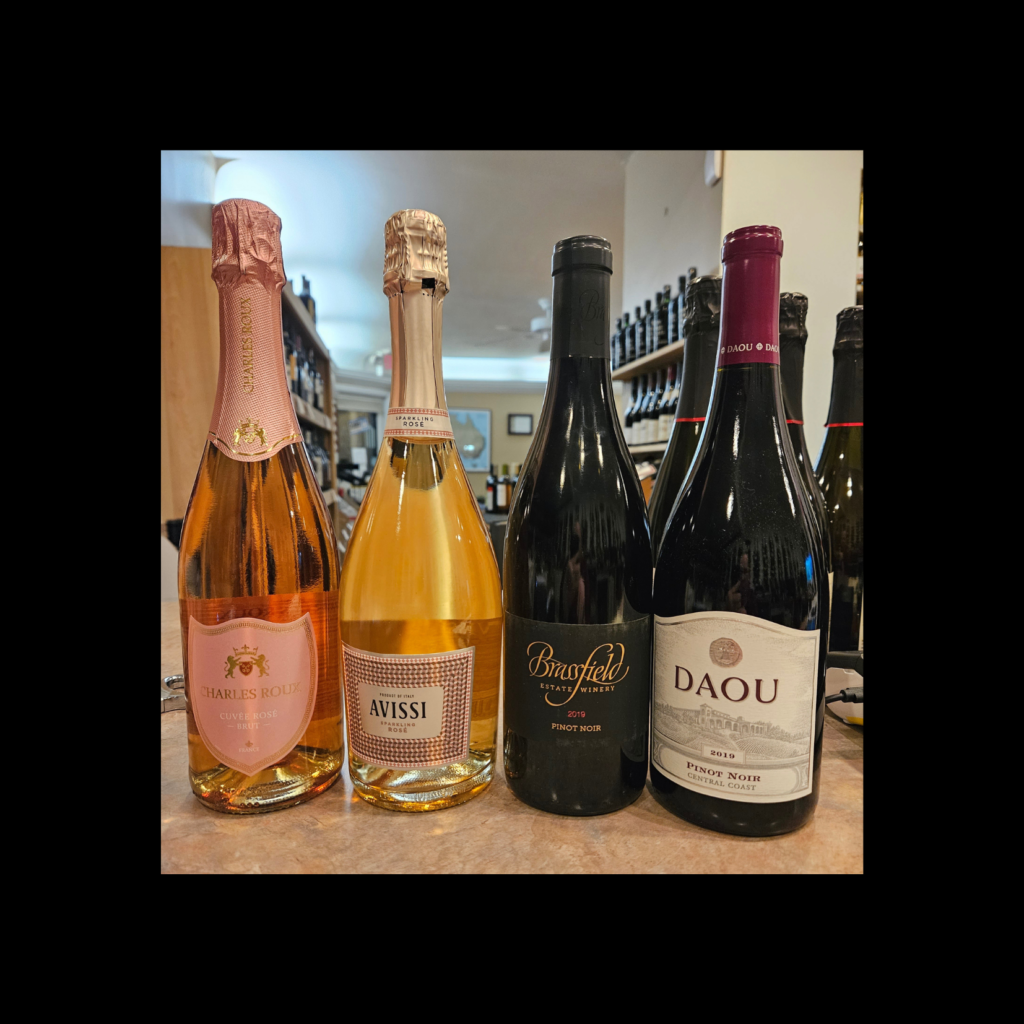 For our final Pizza Buffet this year alongside Jan’s fantastic pizza, we will taste two pinot noirs and two sparkling wines. Both pinots are from California. We will also feature an Italian sparkling rosé and a great value French sparkling wine.