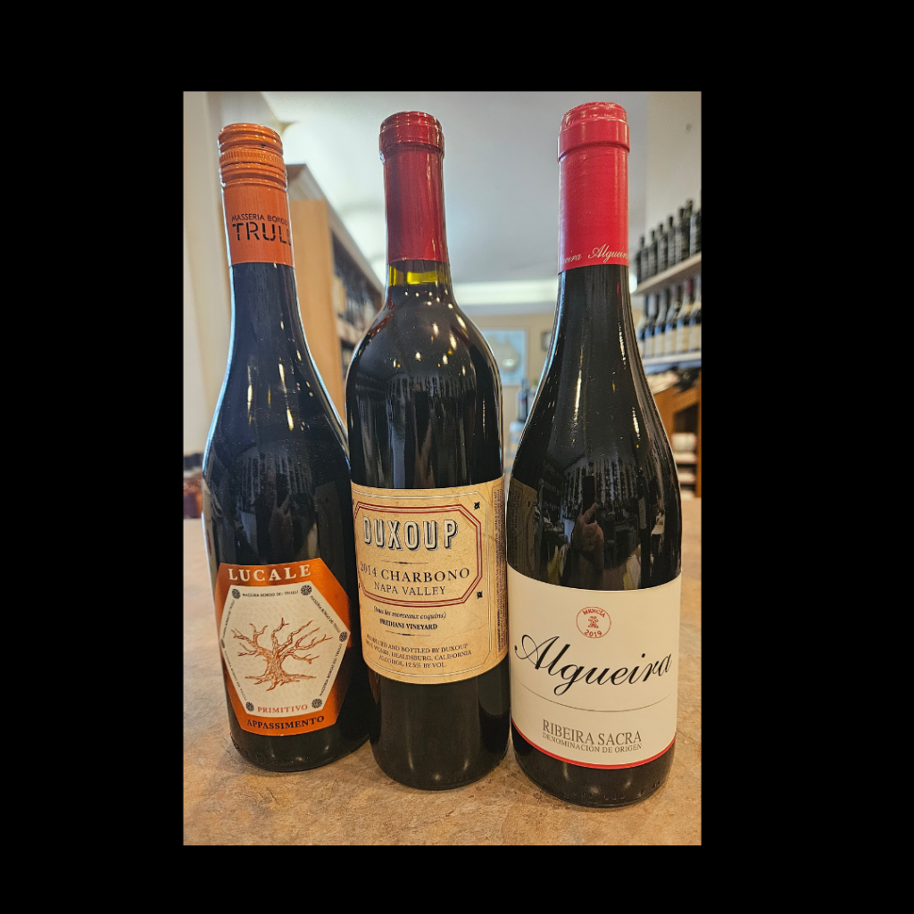 As we transition from 2023 to 2024, we will offer a recap on some of our previous featured wines. This will be an opportunity to revisit some old friends or retry them and see how they are developing. We will present a Spanish Mencia, an Italian Primitivo and a Napa Charbono. All three are discounted at least 30% and should be drinking really well, but you must judge for yourself. Hope to see you soon! Thank you for your support and friendship over the years and Happy New Year!