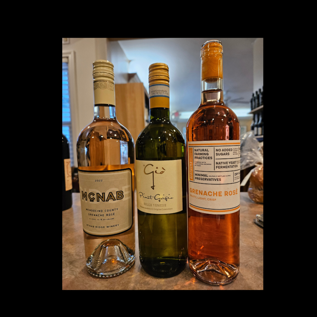 This time, we will offer a taste of spring with two rosés and a pinot grigio. Yes; it is still cold and dark out there, but we can imagine the warm days of spring which are on the horizon. While many of you may not be fans of chilled wines, much less rosés, these are food-friendly wines that can be enjoyed without food as well. One of the rosés featured is even a trendy “natural” wine and vegan. Despite that, it is still a very good wine!