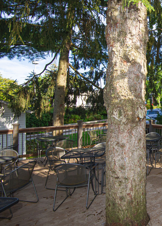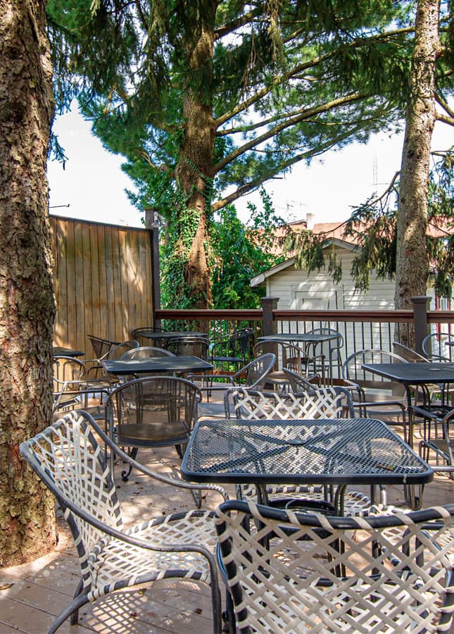 We have some prepackaged snacks available; you are also welcome to bring in your own food or carry out to enjoy in our spacious rooms or deck.
