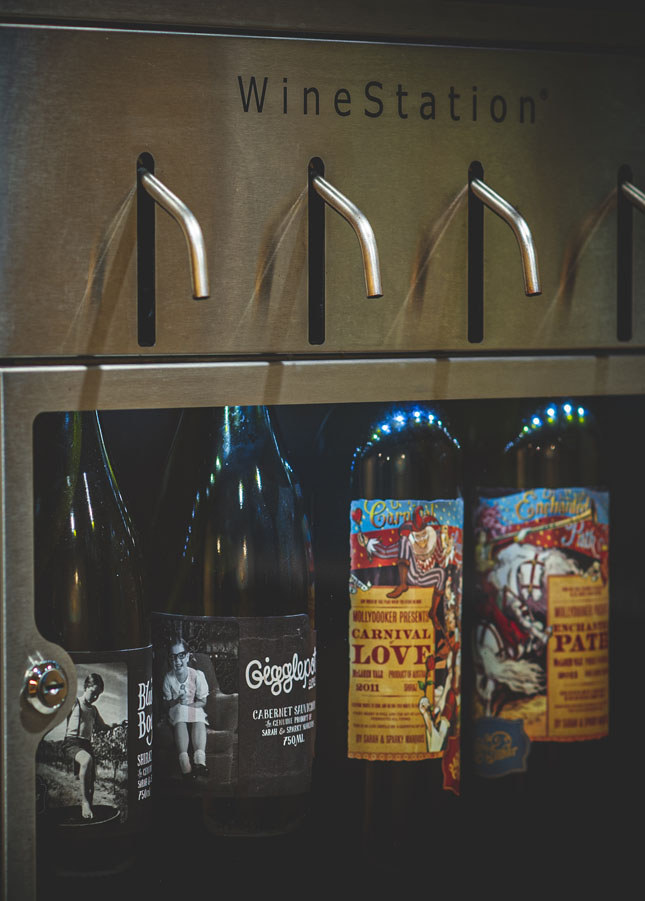 We also encourage you to make your own tastings from our Wine Stations. We offer a frequently-changing selection of six red wines, a white wine and a dry rosé in our two stations. Simply purchase a prepaid card, then select the size pour you want (1 ounce, 2 ounce or five- ounce glass pour). This option is available any time we are open, and we offer Happy Hour in the Wine Stations from 4:30 until 6:00 PM each day with all pours half price.