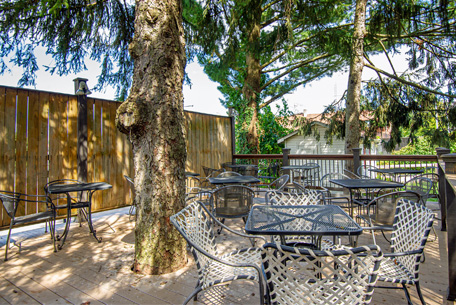 Our outdoor seating area was designed to be your perfect relaxing getaway in the heart of the city. Enjoy the beautiful evergreens that create a intimate atmosphere. Join us for tastings and dinners by the bite.